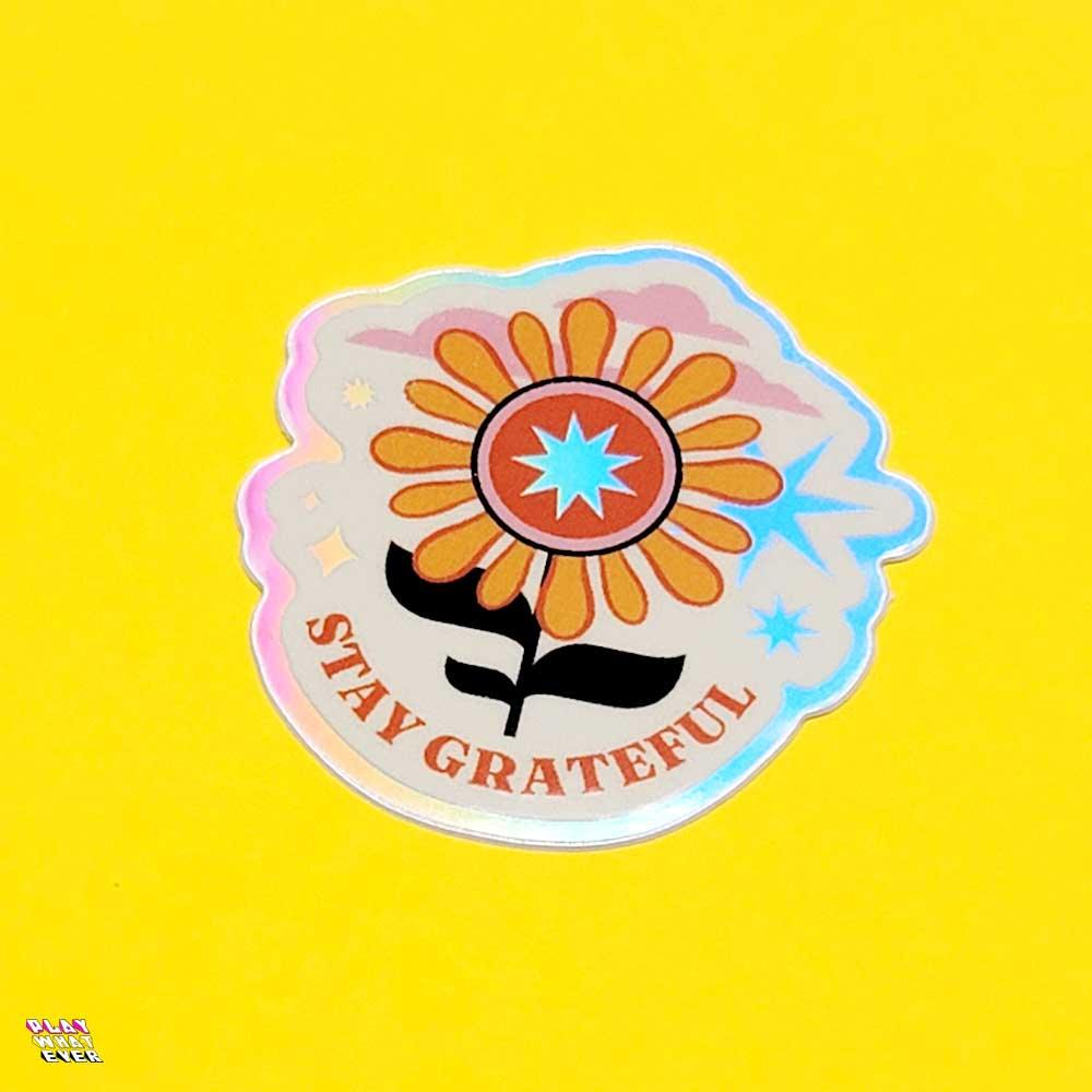 Stay Grateful Retro Flower Holographic Sticker